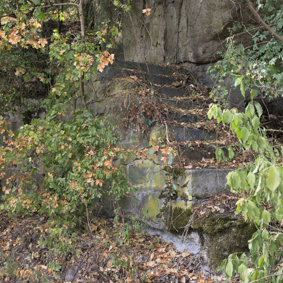 Ručně opracované stupně z šedomodrého kamene nejsou vůbec prošlapány a vzhledem k faktu, že dnes schodiště vlastně ani nikam nevede, tak jim tento stav vydrží nejspíš navěky.