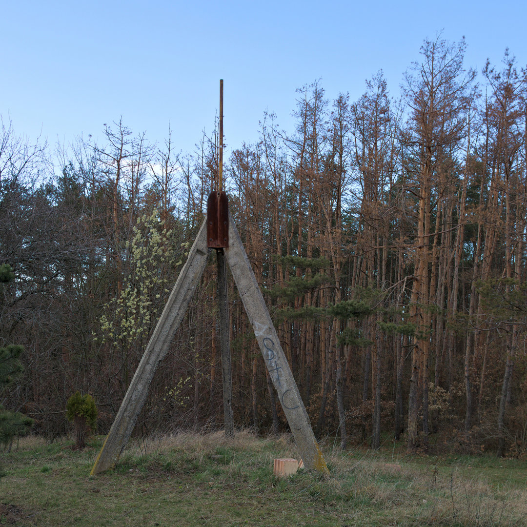 Trojboká pyramida z železobetonových prefabrikátů vztyčená nad trigonometrickým bodem slouží jako trvalá signalizační stavba a umožňuje jeho zaměření.
