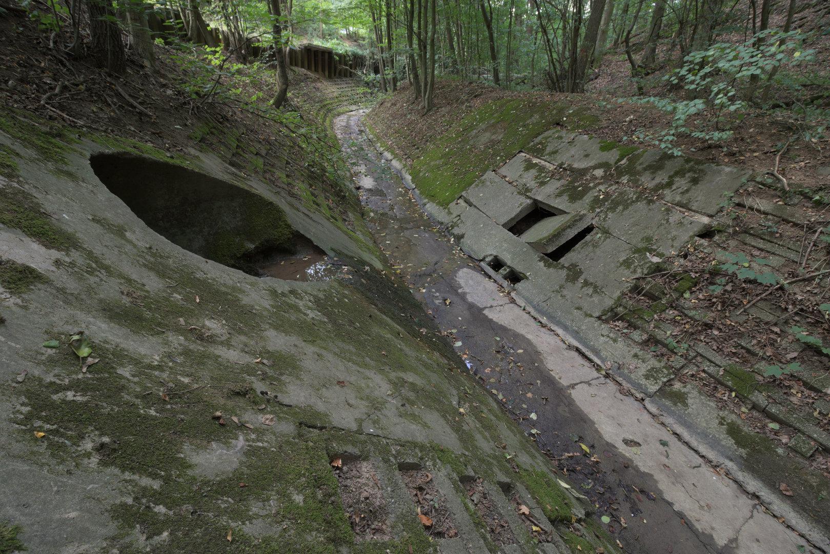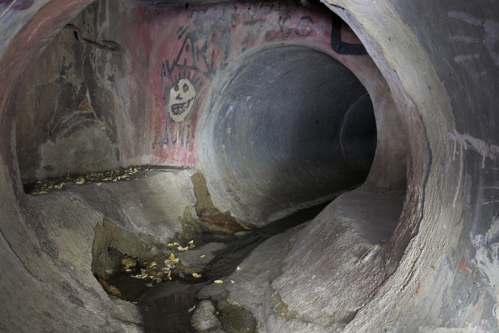 Dešťové stoky nepatří zrovna mezi místa, kde bychom mohli očekávat nějaká překvapení. Tato je od počátku výjimečná tím, že je tvořena dvěma souběžnými troubami, které jsou díky 1500mm světlosti průchozí. Přibližně po 300 metrech putování v mírném předklonu se ve světle baterky objeví spojná komora.