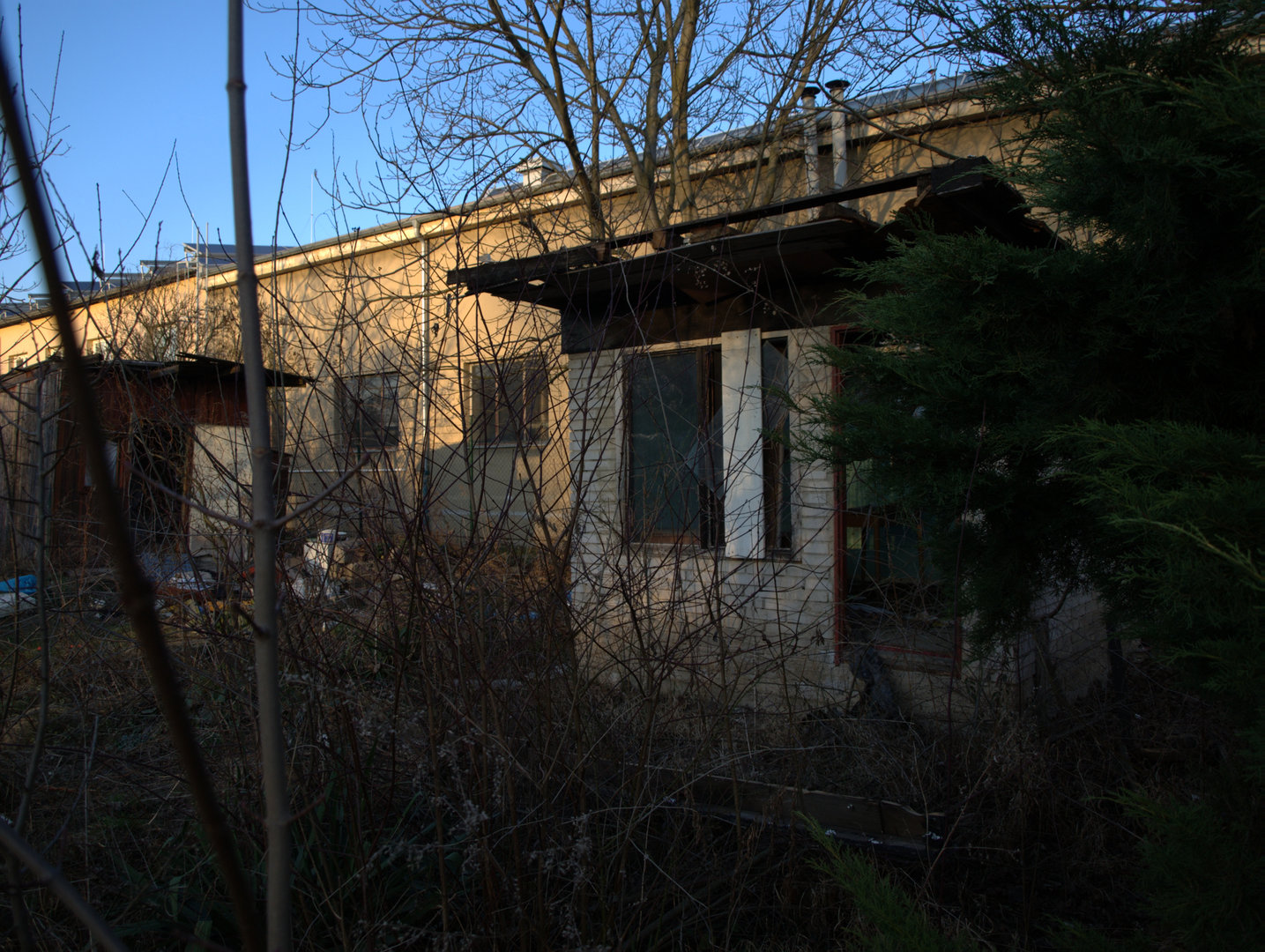 Zarůstající pozemek býval podle všech známek dříve využíván jako zahradní kolonie s několika chatkami. Letité stromy vzpomínají na dobu, kdy pod jejich korunami hospodařili zahrádkáři, kteří na úrodné půdě sváděli nekonečný boj s plevelem, aby nakonec šťastni sklízeli plody svého úsilí.