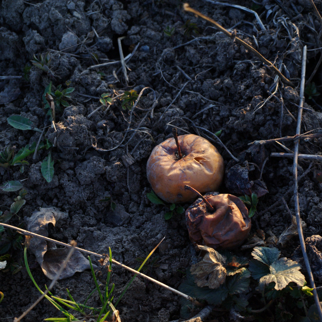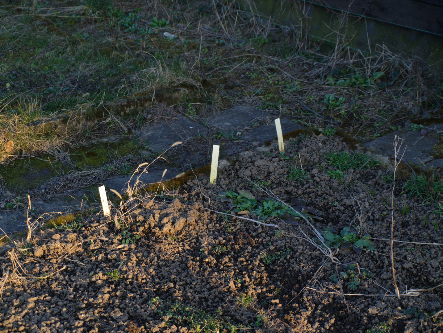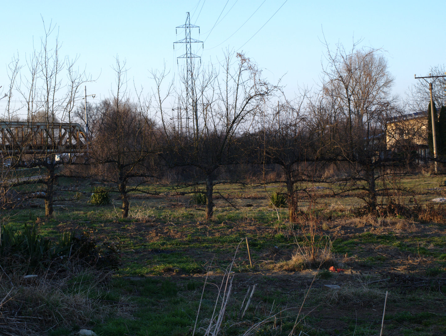Neprořezané ovocné stromy pokryté lišejníkem a parcela zarůstající nekulturní vegetací vzbuzují opravněnou naději na přítomnost opuštěných zahrad.