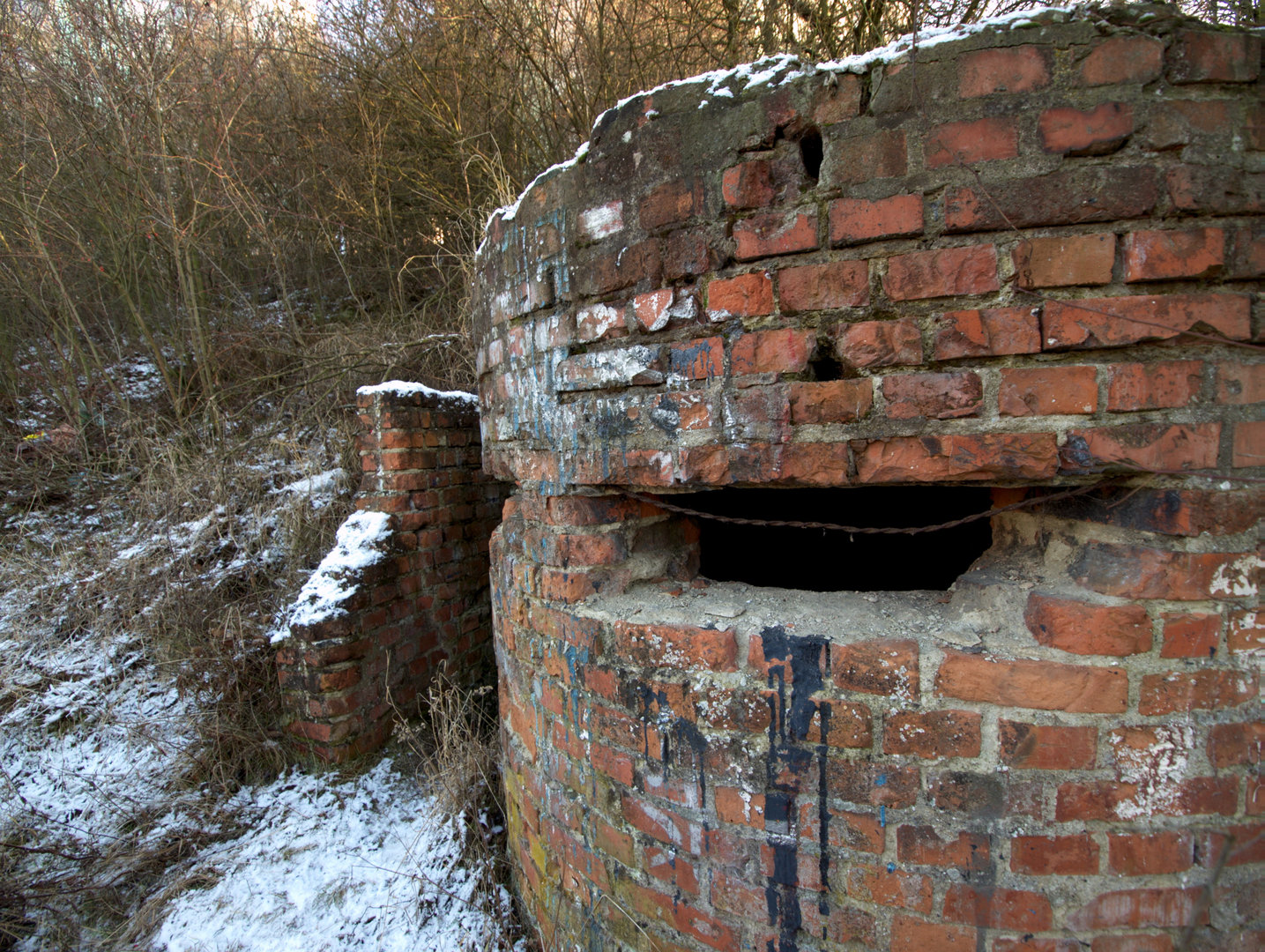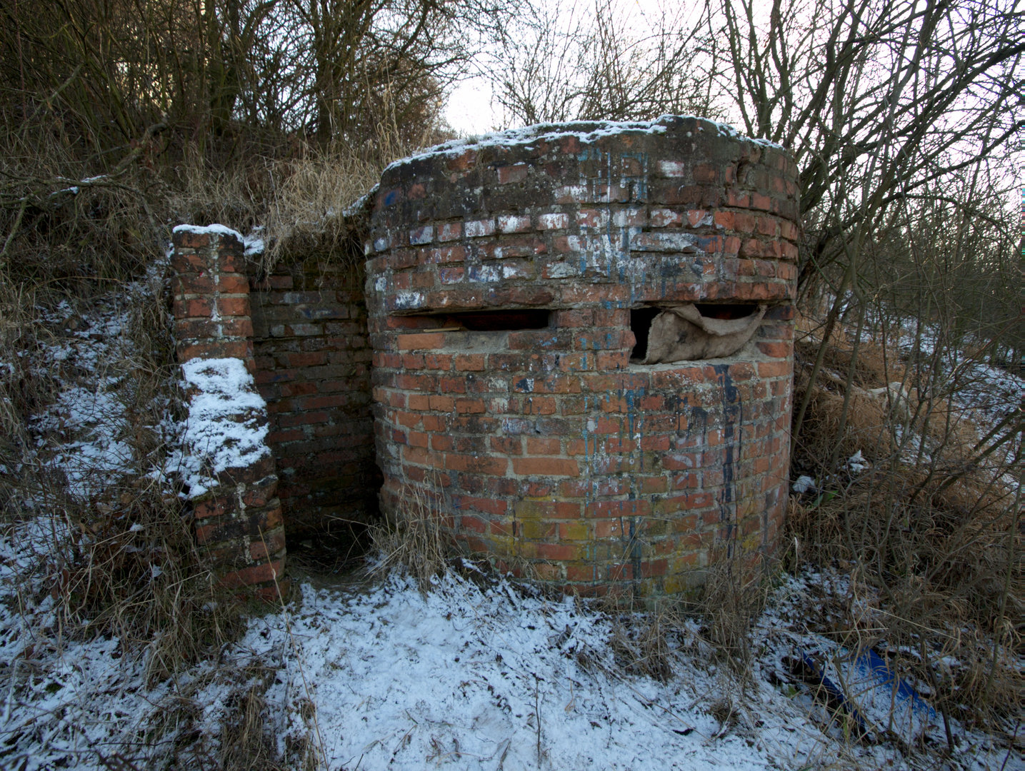 Malý objekt zapuštěný do země je situován tak, jako by měl střežit cestu na hráz. Možná tomu tak skutečně bylo a jedná se o atypickou pozorovatelnu. Vnitřní prostor bývá často zaplněn posekanými křovisky, která jsou pak uvnitř i pálena, to způsobuje další narušení již dost nekvalitního betonu stěn.
