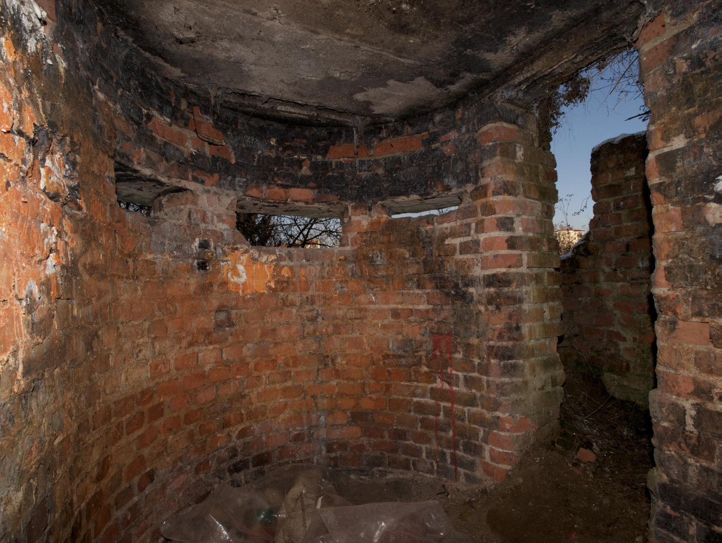 Další z poválečných pozorovatelen je ukryta v bývalé kolonii zahrad a ačkoli byla donedávna nepřístupná, nelze o ní říci, že je dochována v perfektním stavu. Úprava okolí z betonových kostek a zábradlí na stropě objektu nás mají jen připravit na daleko horší zásahy.