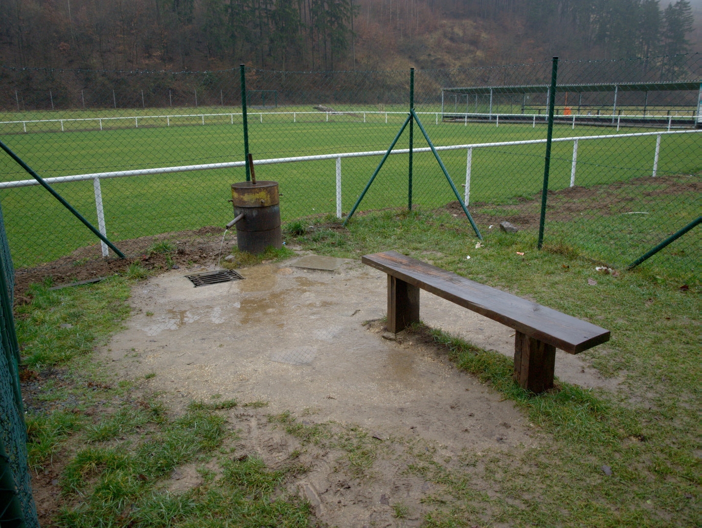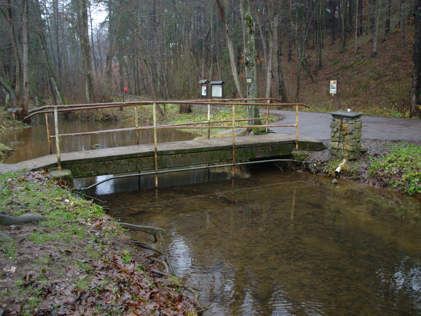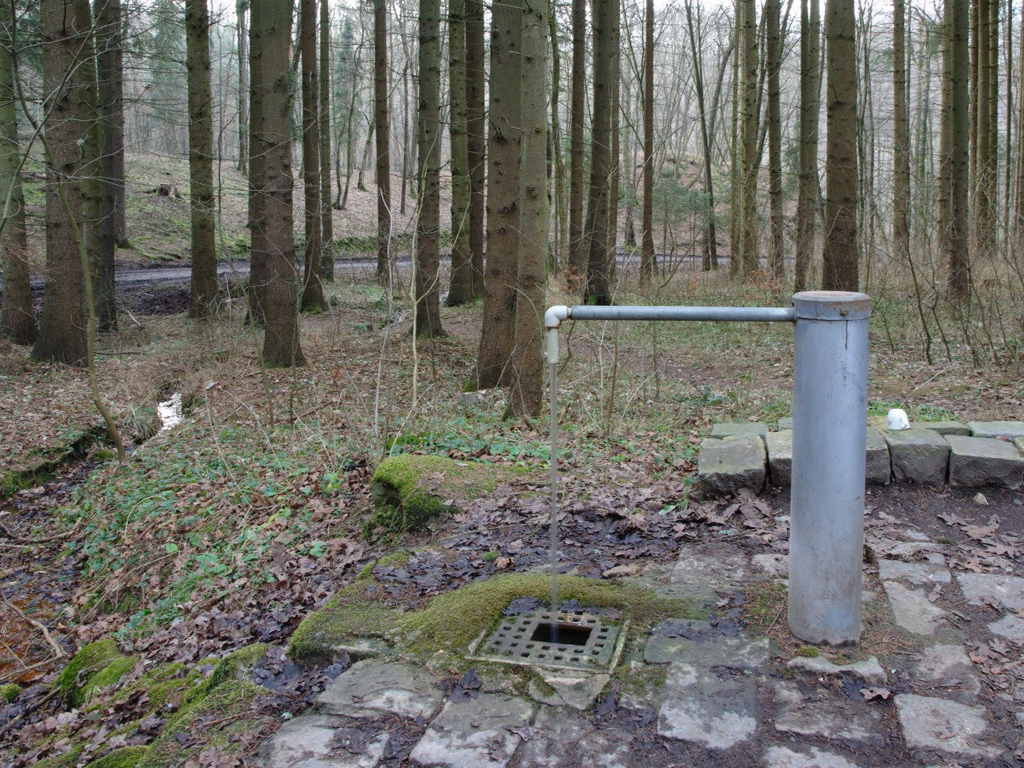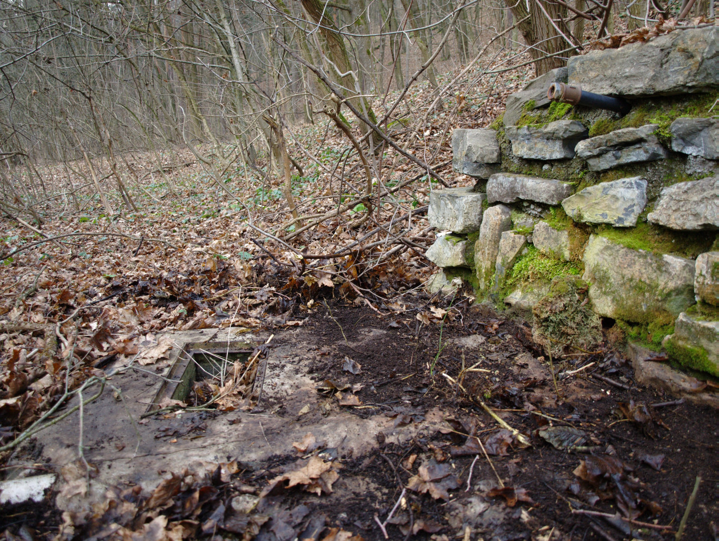Na konci levé zdi je odběrné místo, které je však od vrtu odpojené, konec potrubí býval nejspíš dříve zakončen kohoutkem.