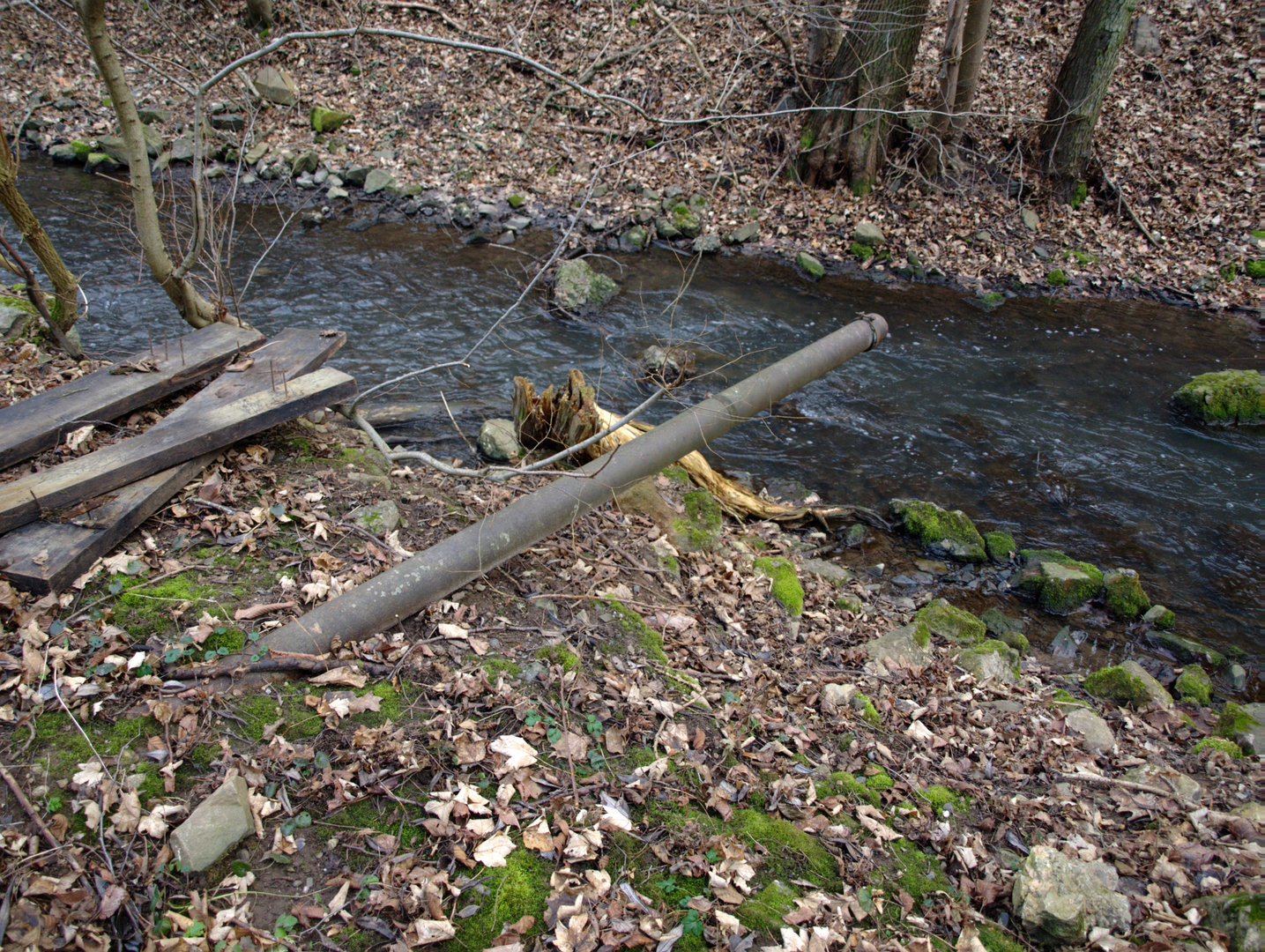 Od vrtu vede do Říčky odpadní potrubí, které mělo odvádět unikající vodu, je však ucpané, a proto je okolí vstupu podmáčené. Značný přesah měl vyloučit erozi břehu odváděnou vodou.