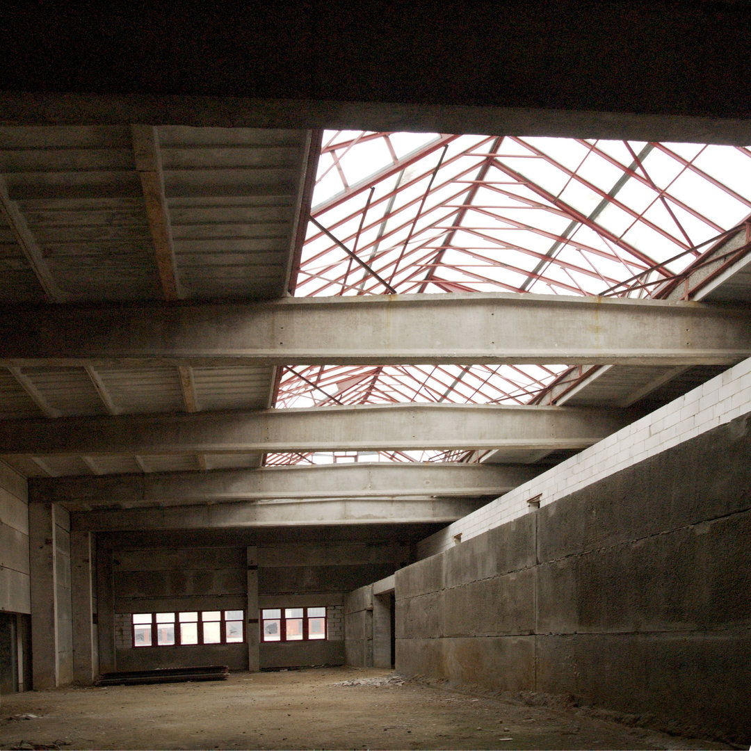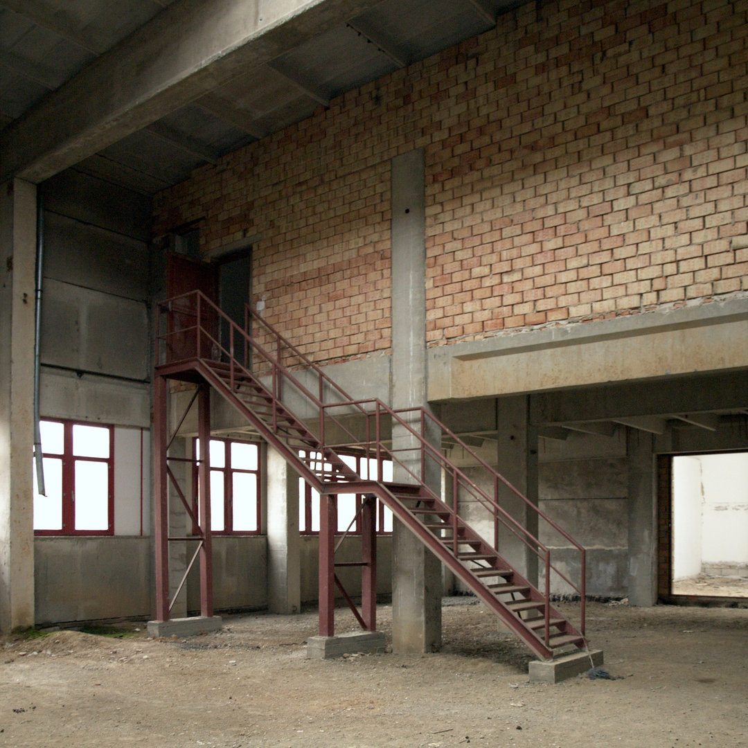 Montovaná hala s ocelových schodištěm a zděnou příčkou