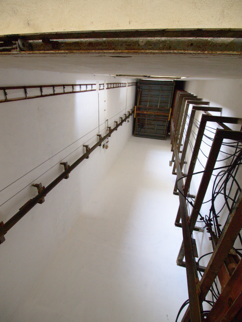 Uvnitř hlavní budovy, některé patra jsou člěněna příčkami