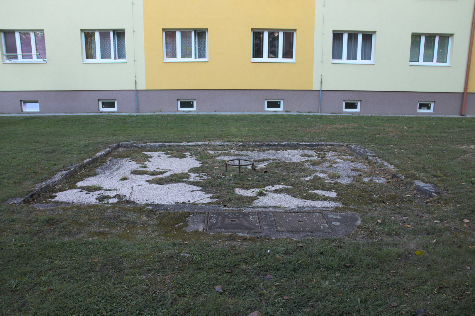 Nebýt podivného umístění, dal by se masivní betonový objekt považovat za podstavec pozůstalý po soše titánských rozměrů. Po vystřízlivění z romantických představ je potřeba si přiznat, že pod kompenzačním ohybem parovodu je nadzemní protiletecký kryt pro ukrytí zaměstnanců nádraží. Zkosení silného stropu bylo nejspíš zamýšleno k odražení přímého zásahu, avšak aby tento efekt byl úplný, musel by mít kryt tvar pyramidy.