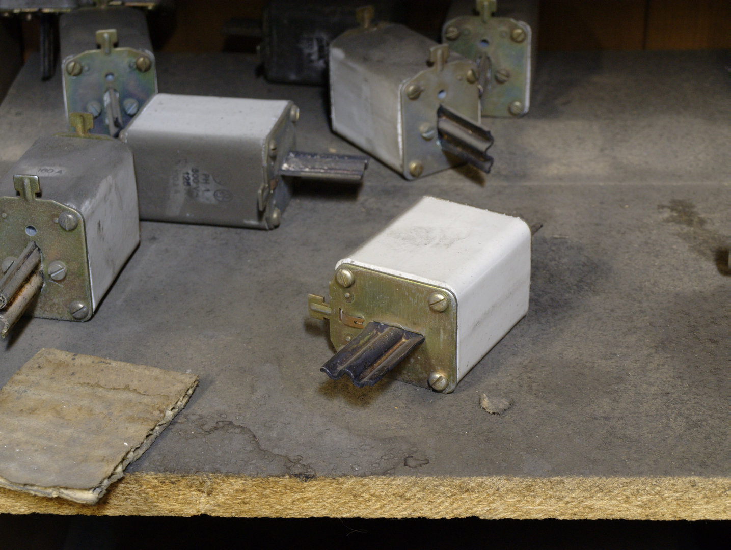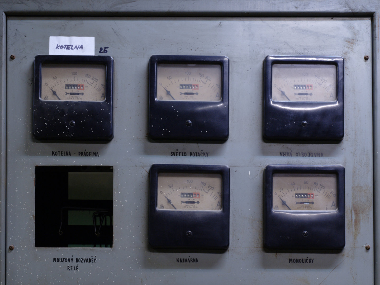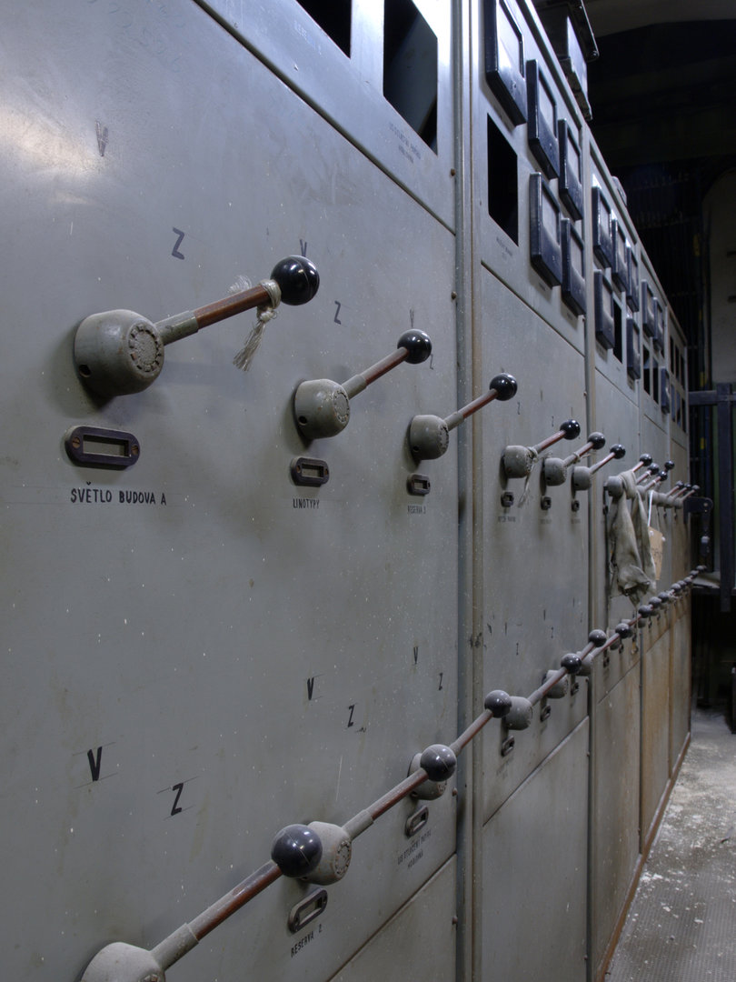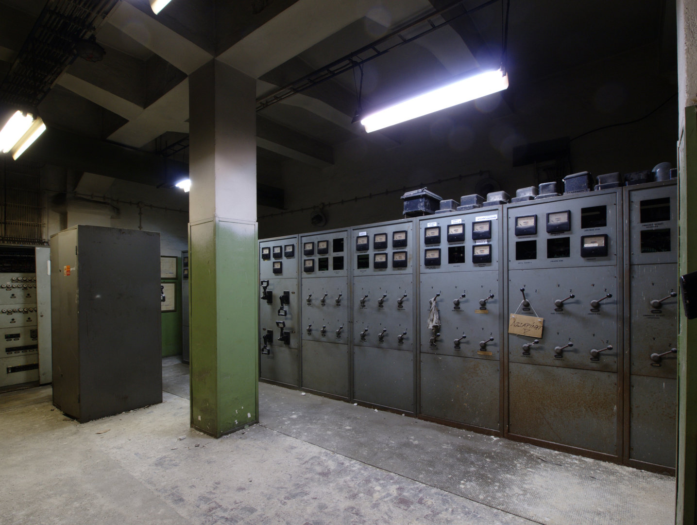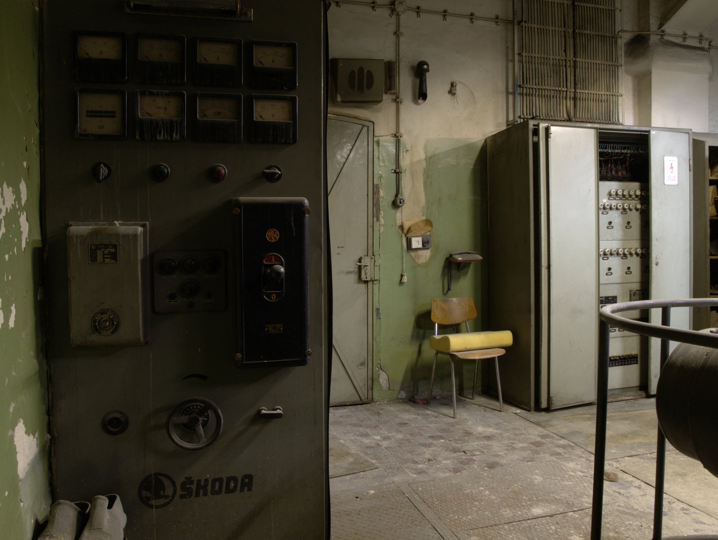 Místnost za halou s rotačkami, zde bývaly asi pojistky