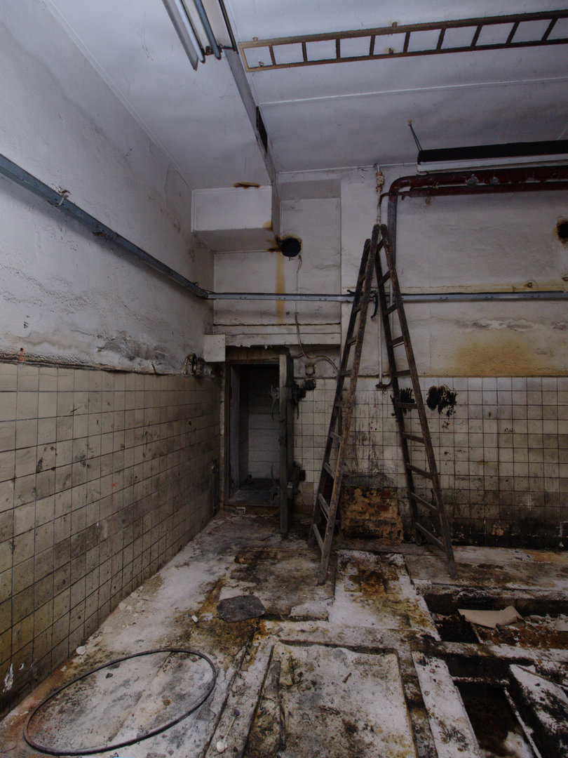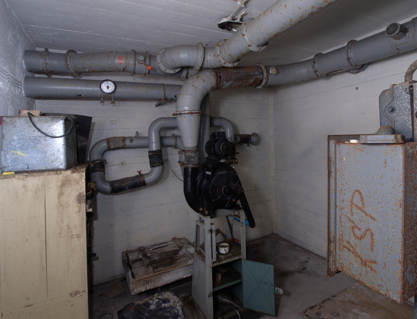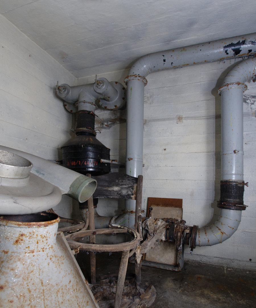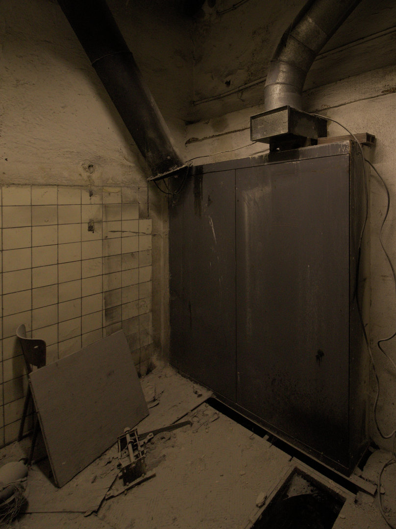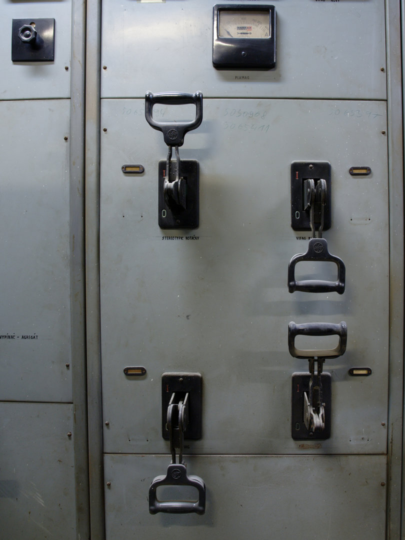 Místnost za halou s rotačkami, zde bývaly asi pojistky
