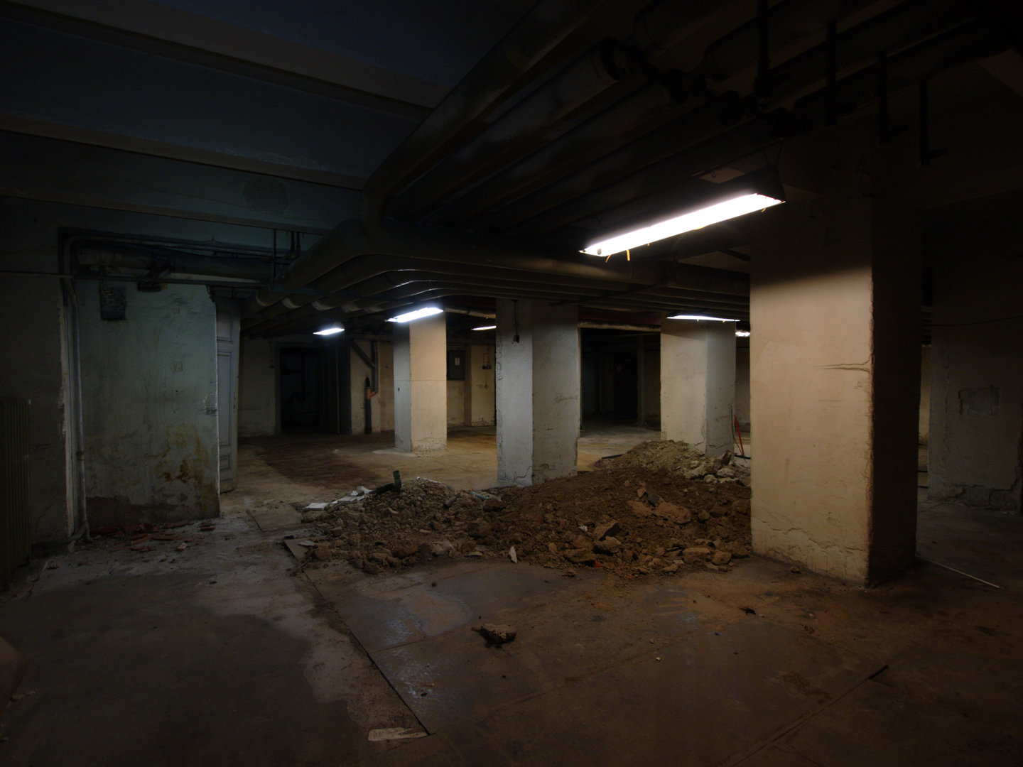 Poté, co se koncem 90. let 20. století ve stárnoucí budově Moravské typografie na Moravském náměstí přestalo tisknout, byly její rozsáhlé prostory rozpronajímány jako ateliéry, zkušebny, kanceláře či klubovny mnoha subjektům. Ale podzemní část, ve které se nacházelo technické zázemí a kryt CO, už své využití nenašla. Dosud plně elektrifikovaný labyrint podzemních chodeb osvětlovaly zářivky různých barevných teplot, ve strojovně záložního generátoru v pojistkách a spínačích hučel proud a na mnoha místech byly na stěnách nesmazatelné otisky rukou zbarvených v tiskařské černi. Tento zpola umírající dům měl svá tajuplná místa, která by bez složitých příprav mohla hrát v hororovém filmu.