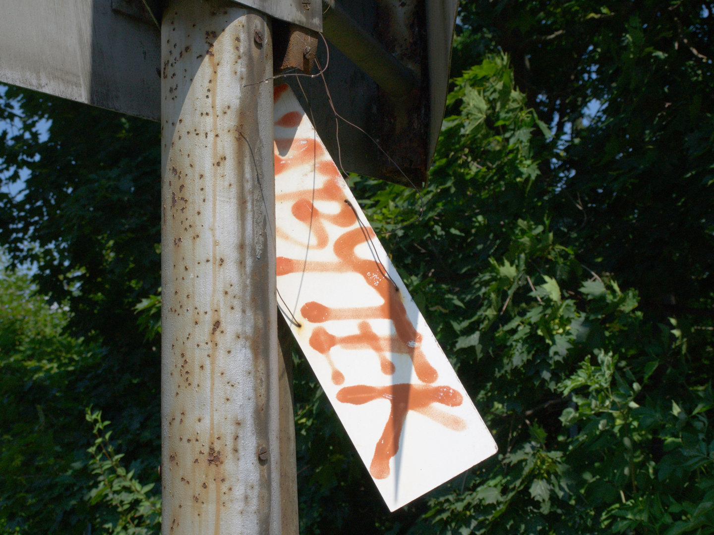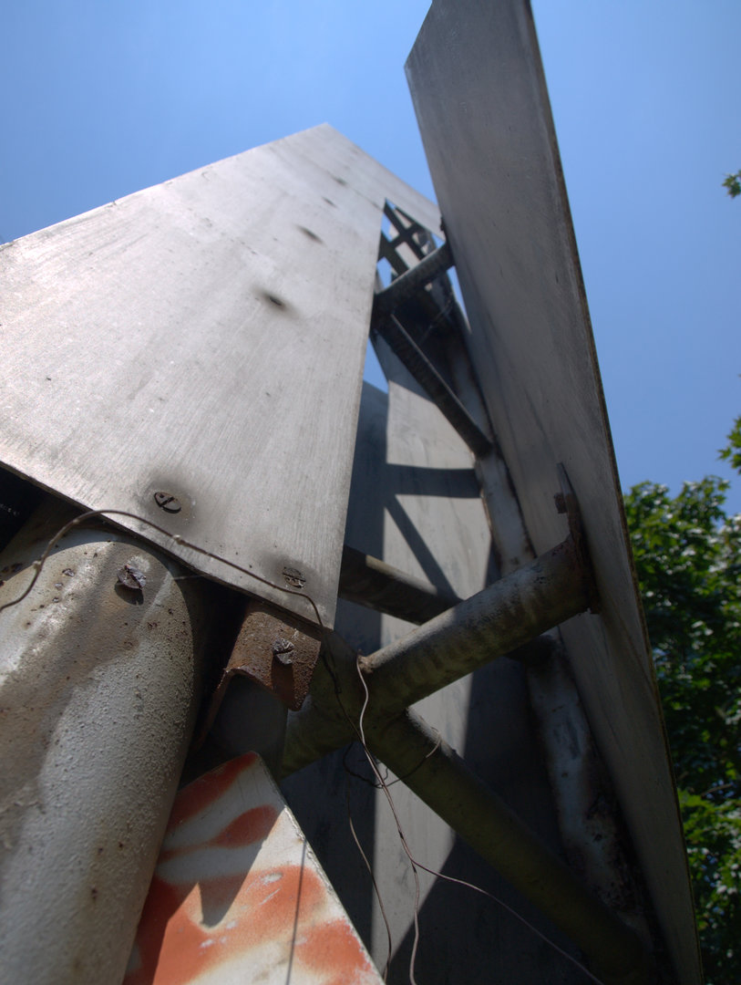 Ačkoli stojí blízko autobusové zastávky, kolemjdoucí jej přehlížejí podobně jako starého žebráka. O reklamní plochy rezivého pylonu z plechu už dávno žádný inzerent zájem nemá.