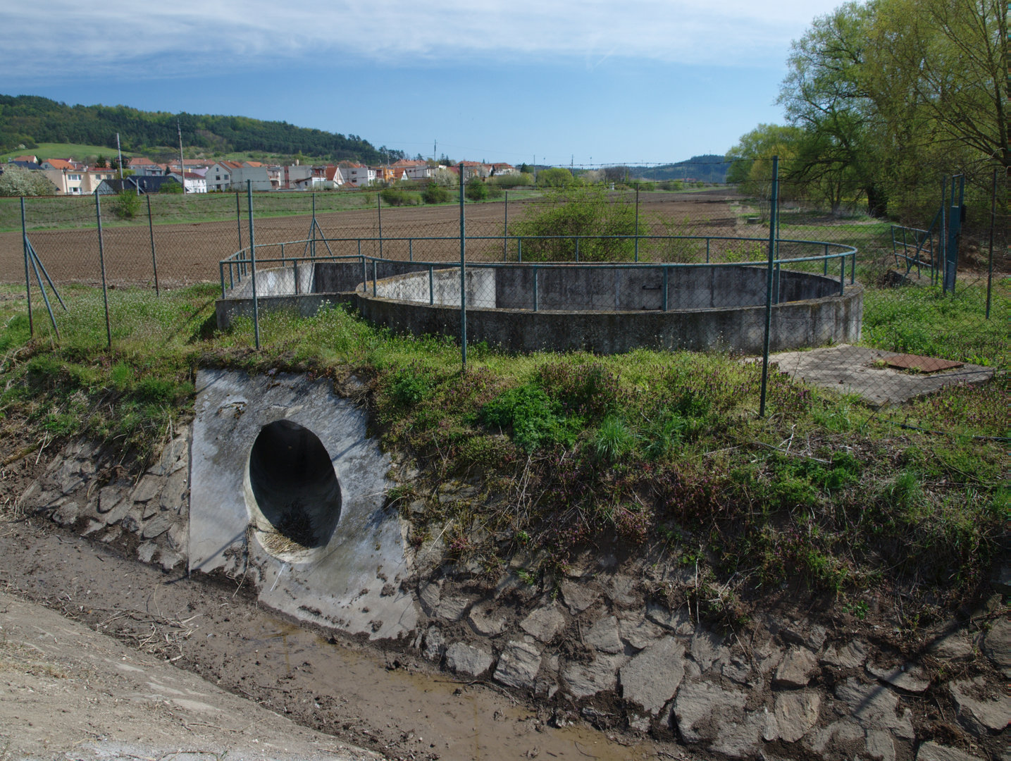 Skruže revizních šachet neomylně směřují k čebínské ČOV, přestože se nachází v extravilánu, jejich rozestup nepřekračuje 50 m.