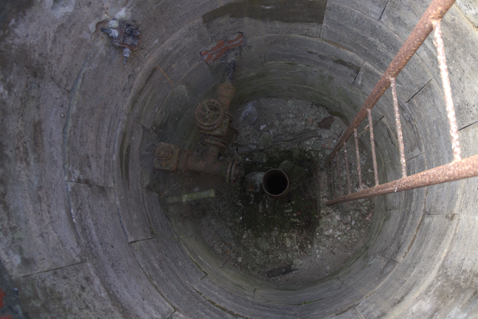 Menší z obou studní ukrývá obnažené ústí vrtu, na které bylo napojené čerpadlo, po jeho odpojení měl být vrt vodotěsně uzavřen, aby se zabránilo možné kontaminaci podzemních vod.