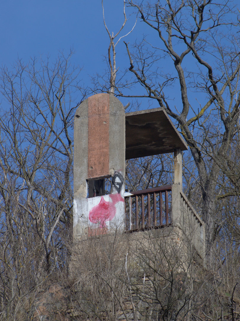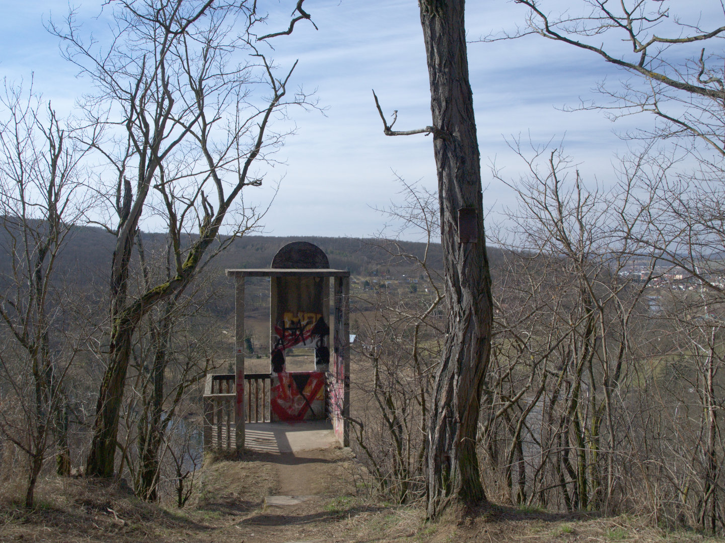 Lapidární betonový altán leží přímo na trase červené turistické značky a přestože je relativně vzdálen od obydlených míst, jsou jeho drsné betonové povrchy znehodnoceny graffiti. Pouze na obtížně přístupných částech je zachována původní barevnost a díky své romantické zchátralosti je příjemným zjevem na jinak fádní cestě lesem.