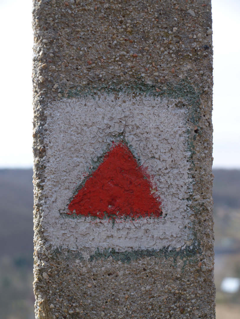 Turistická značka s trojúhelníkem znamená „odbočku k vrcholu nebo vyhlídce“, v tomto případě je však umístěna přímo na svém cíli