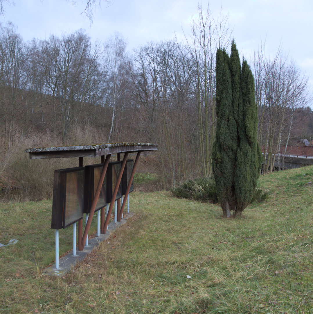 Na streetview z roku 2011 je patrné, že vývěska sloužila zde sídlící firmě jako reklamní plocha. Velkou nevýhodou čtveřice prosklených vitrín je však jejich větší odlehlost od silnice či cesty.