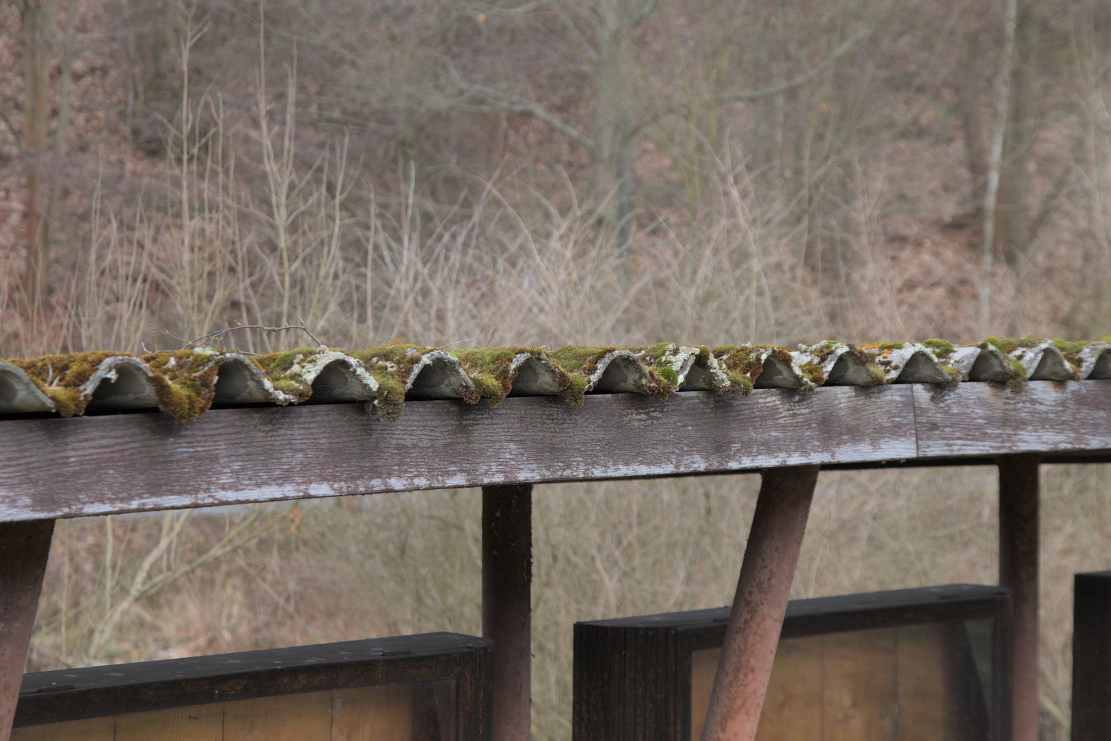Vrstva mechu na vlnité stříšce je s ohledem na nepraktické umístění vývěsky snad až příliš nízká, silnější pokryv by jistě lépe akcentoval zapomenutost objektu.