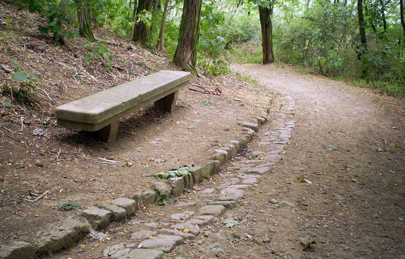 Ve Wilsonově lese je mnoho laviček, ale narazil jsem na jen na jednu kamennou. Pravděpodobně se jedná o poslendní exemplář starého parkového vybavení.