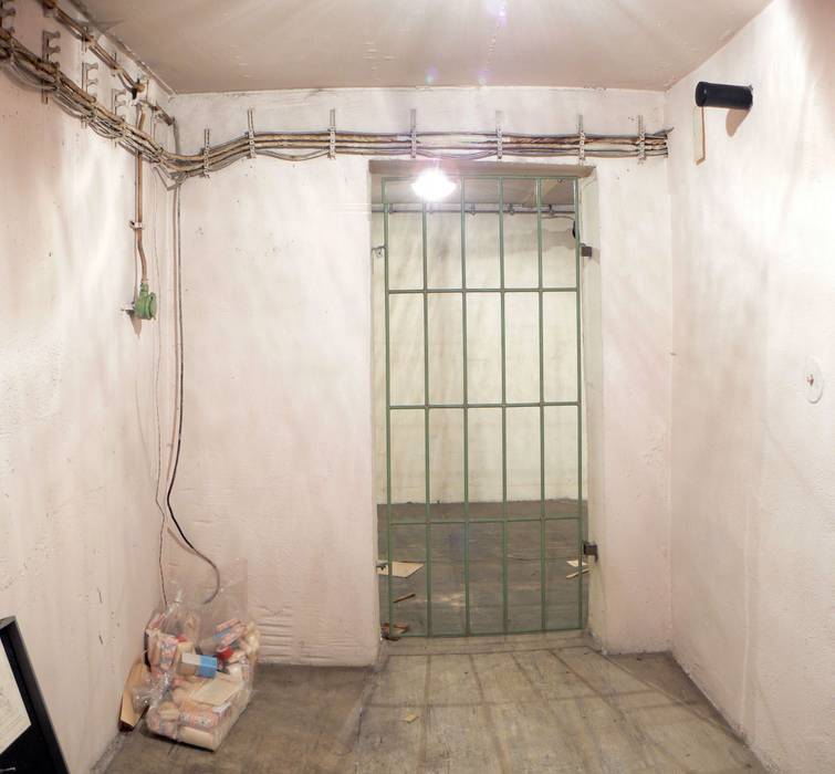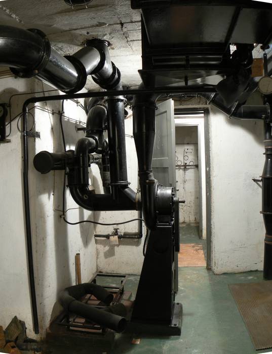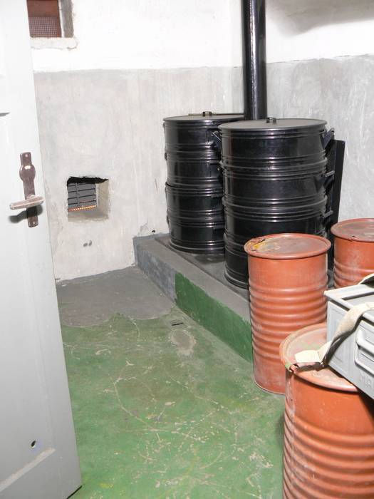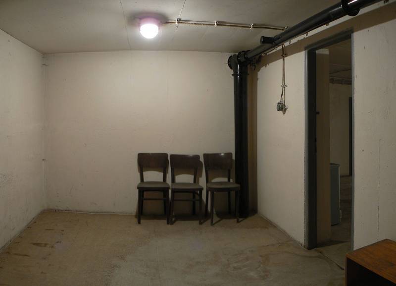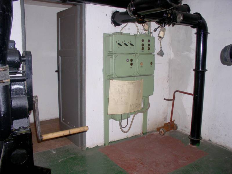 Hlavní místnost druhého podlaží je od prostoru schodiště oddělena dvěma zvláštními pancéřovými dveřmi. Je zde opět elektrické topení, tlaková nádrž na vodu i rozvodné skříně na zdi.