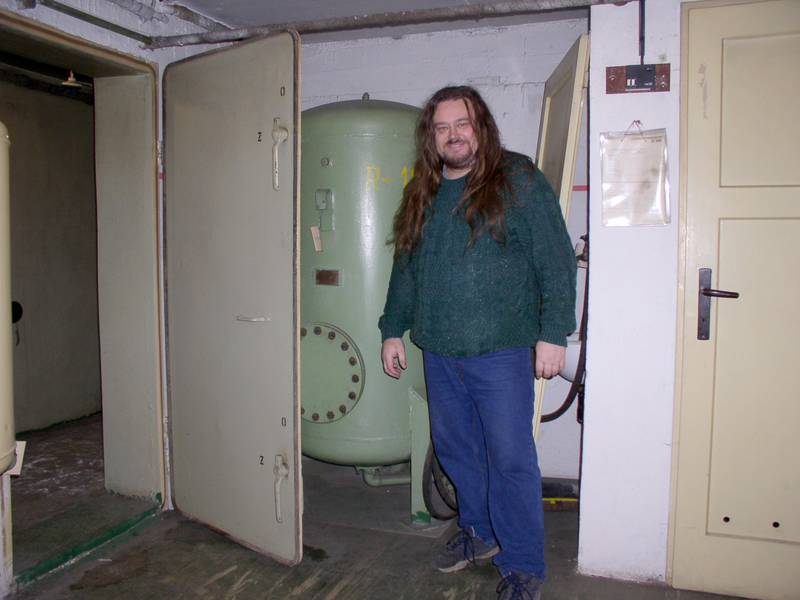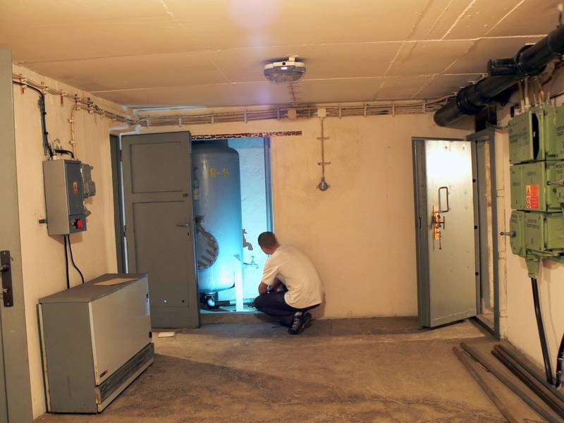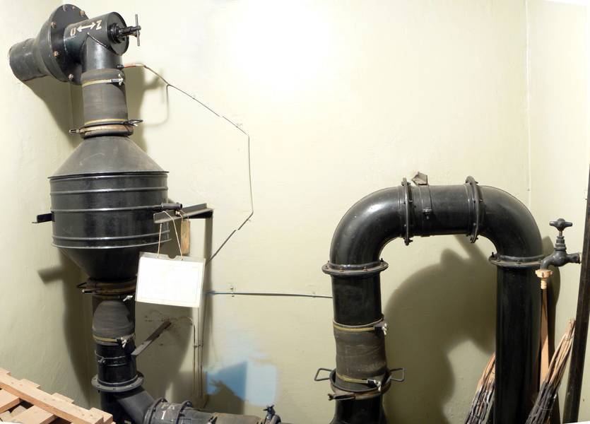 Čistou část od nečisté oddělují už jen protiplynové dveře. Tlaková nádrž za Radkem je na každém podlaží a slouží k uchování pitné vody.