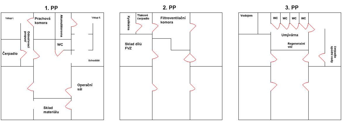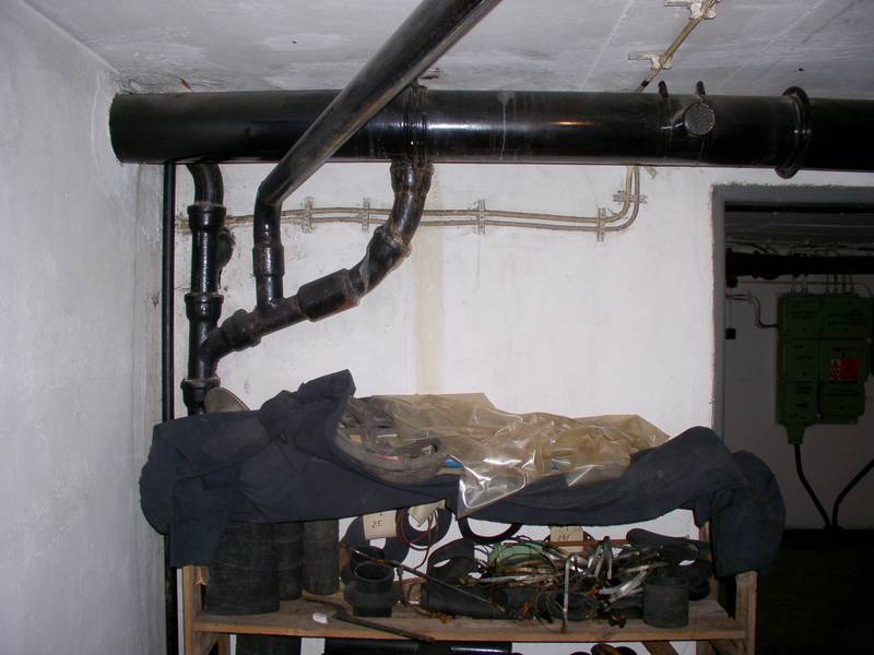 Ostatní místnosti jsou až na sklad dílu FVZ žalostně prázdné. Jsou tu uskladněny především gumové a pryžové spojovací díly, náhradní kolena a nářadí pro provádění údržby.