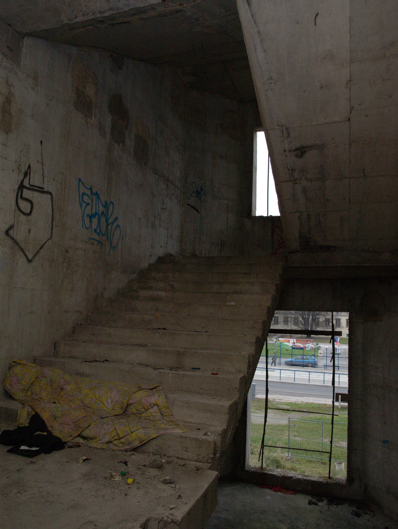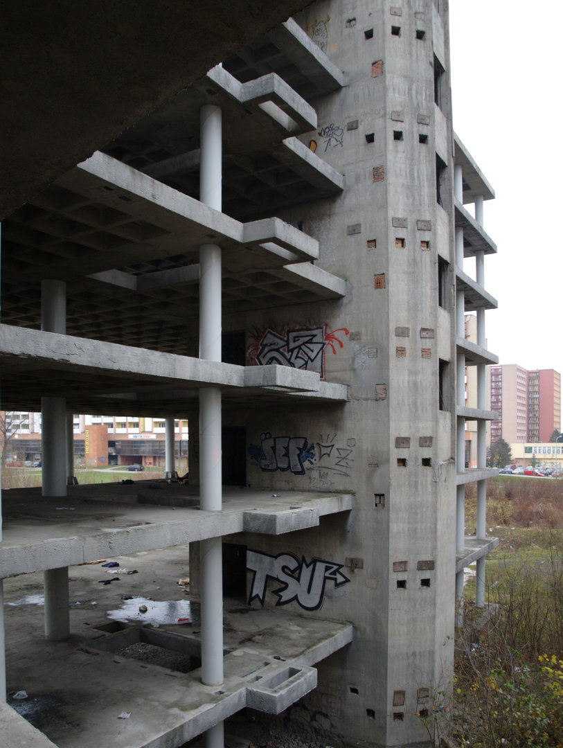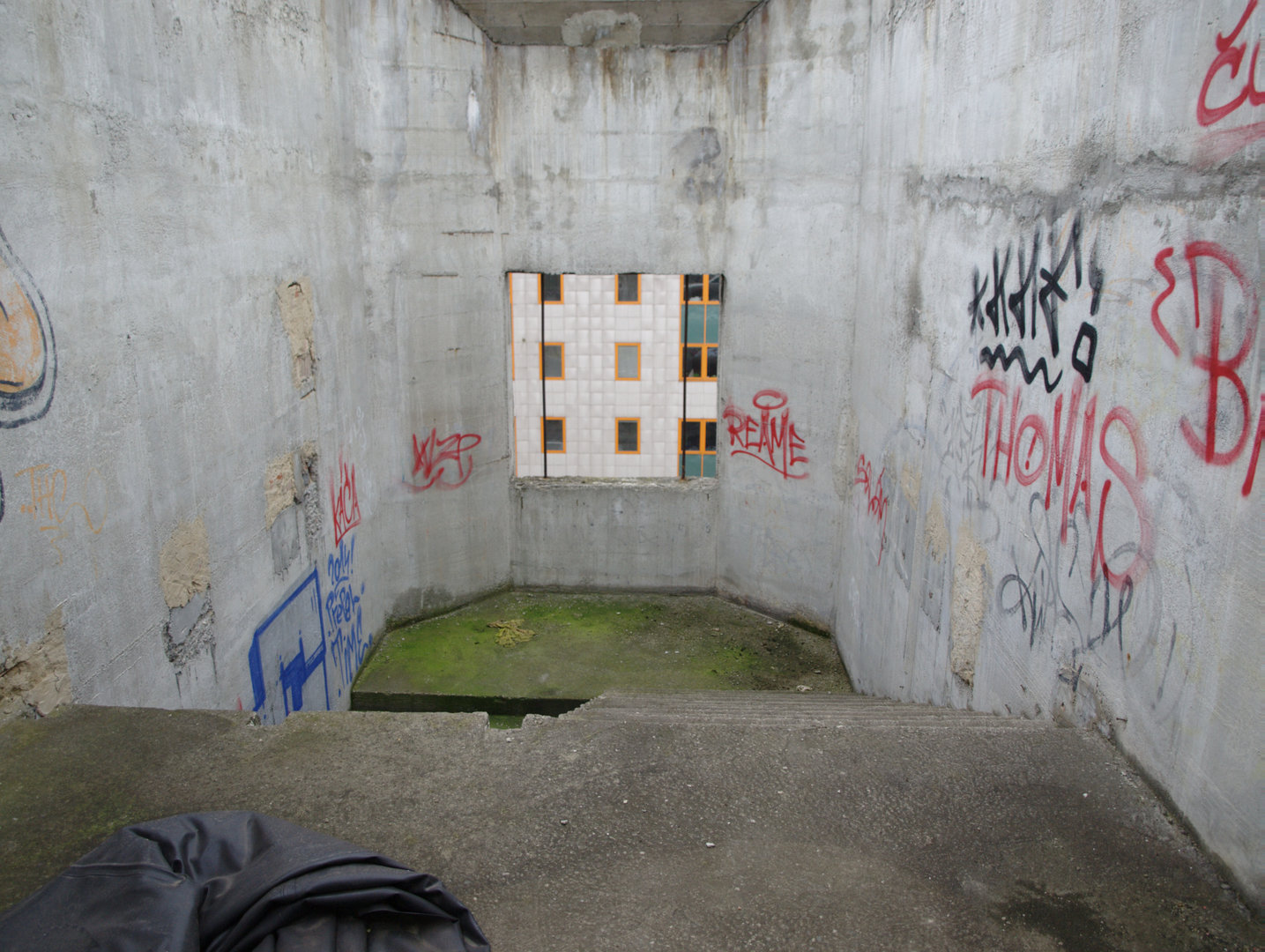 Zchátralý objekt s dosud relativně nepoškozenými okny byl v sousedství obytných domů zvláštním a zřejmě i nepříliš vítaným zjevem. Posprejovaná okna byla jasným signálem, že zde je „opuštěno“.