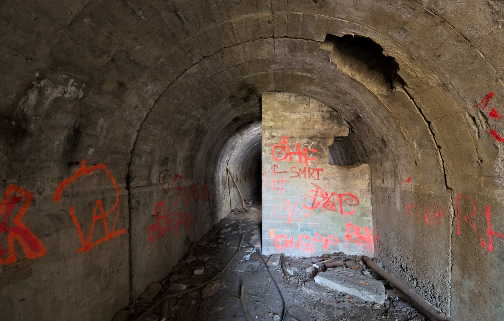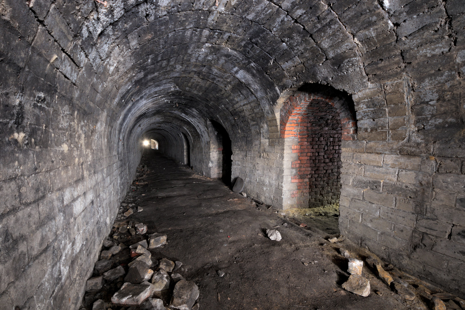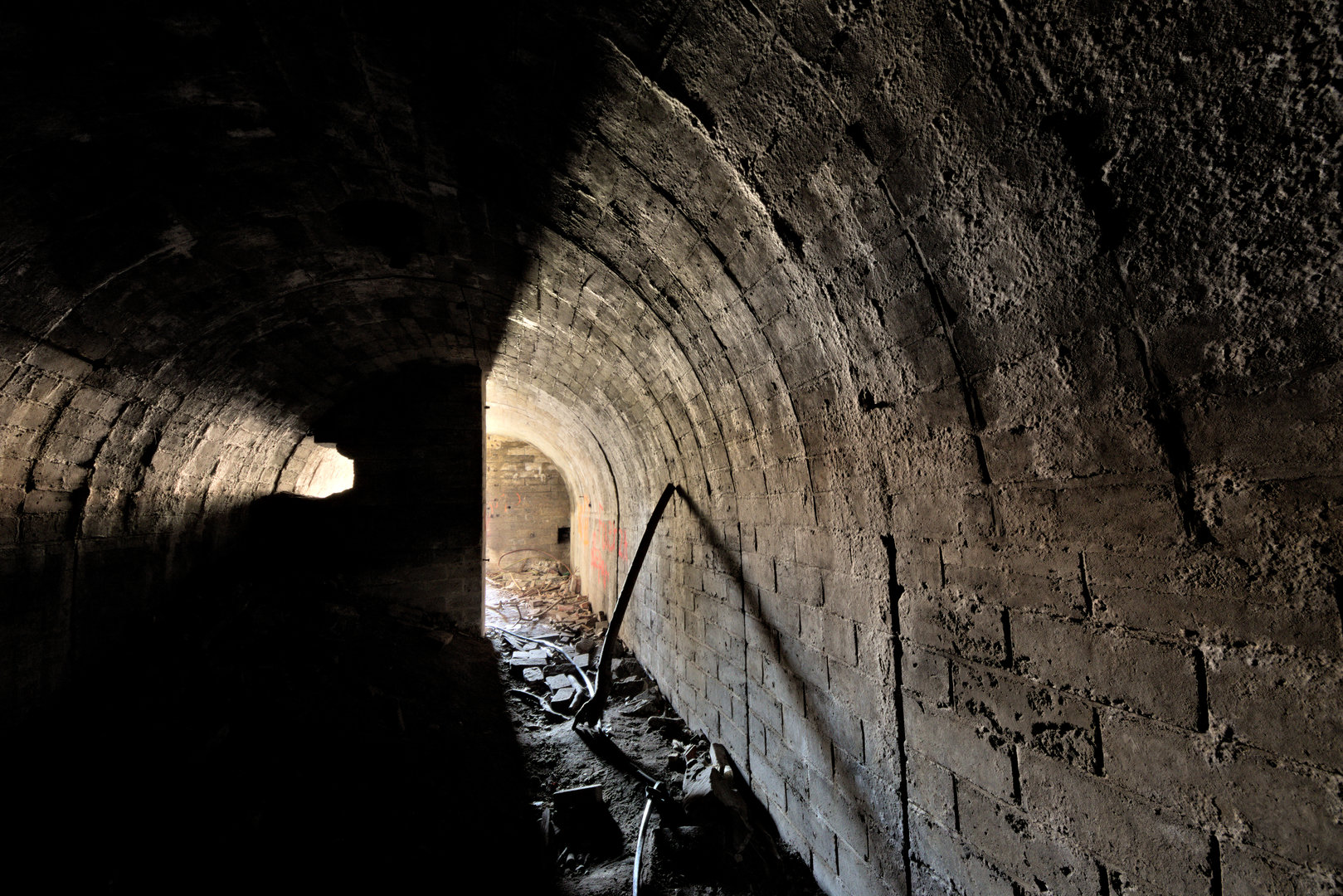 Překvapení čeká v jedné z mnoha šachet, kterými je špilberský kopec provrtán; do betonového ostění je vysekán otvor umožňující průnik do cihlové chodby. Při sestupu po značně rezavých stupních v šachtě se stačí ve vhodné výšce šikovně přikrčit a člověk sedí pod cihlovou klenbou.