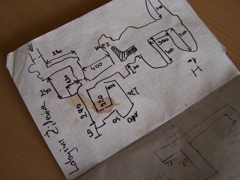 Kreslení plánků do sešitu má pochopitelně řádu výhod a nevýhod. Mezi výhody řadím především snadnou manipulaci, nízké pořizovací náklady a značnou odolnost proti nešetrnému zacházení. Hlavní nevýhodou je omezený prostor, který sešit poskytuje, a některá rozsáhlejší podzemí se do něj zkrátka nevejdou (například podzemí Olomouce si vyžádalo několik výkresů formátu A3).