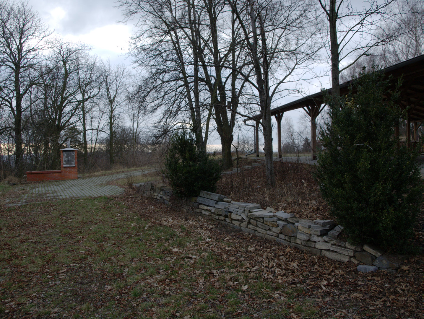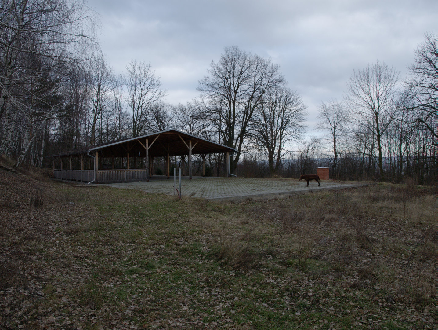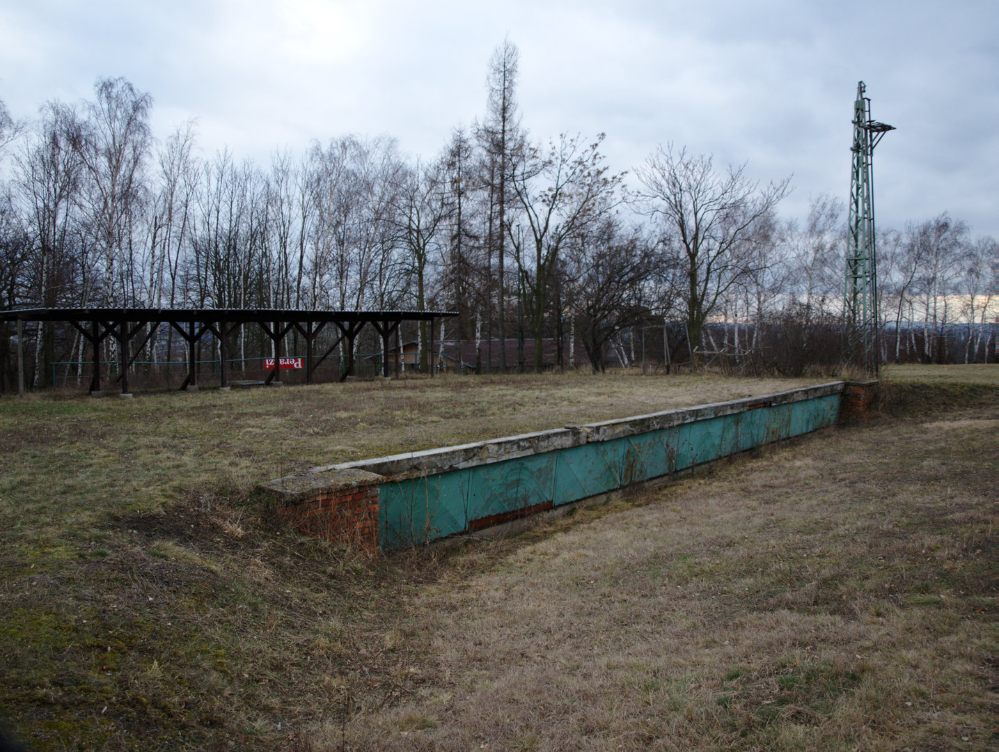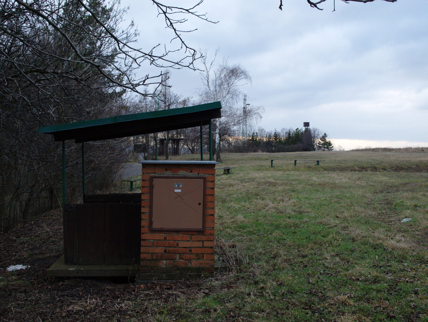 Zakryté prostupy, ze kterých vylétali asfaltoví holubi, v pozadí střeliště na skeet