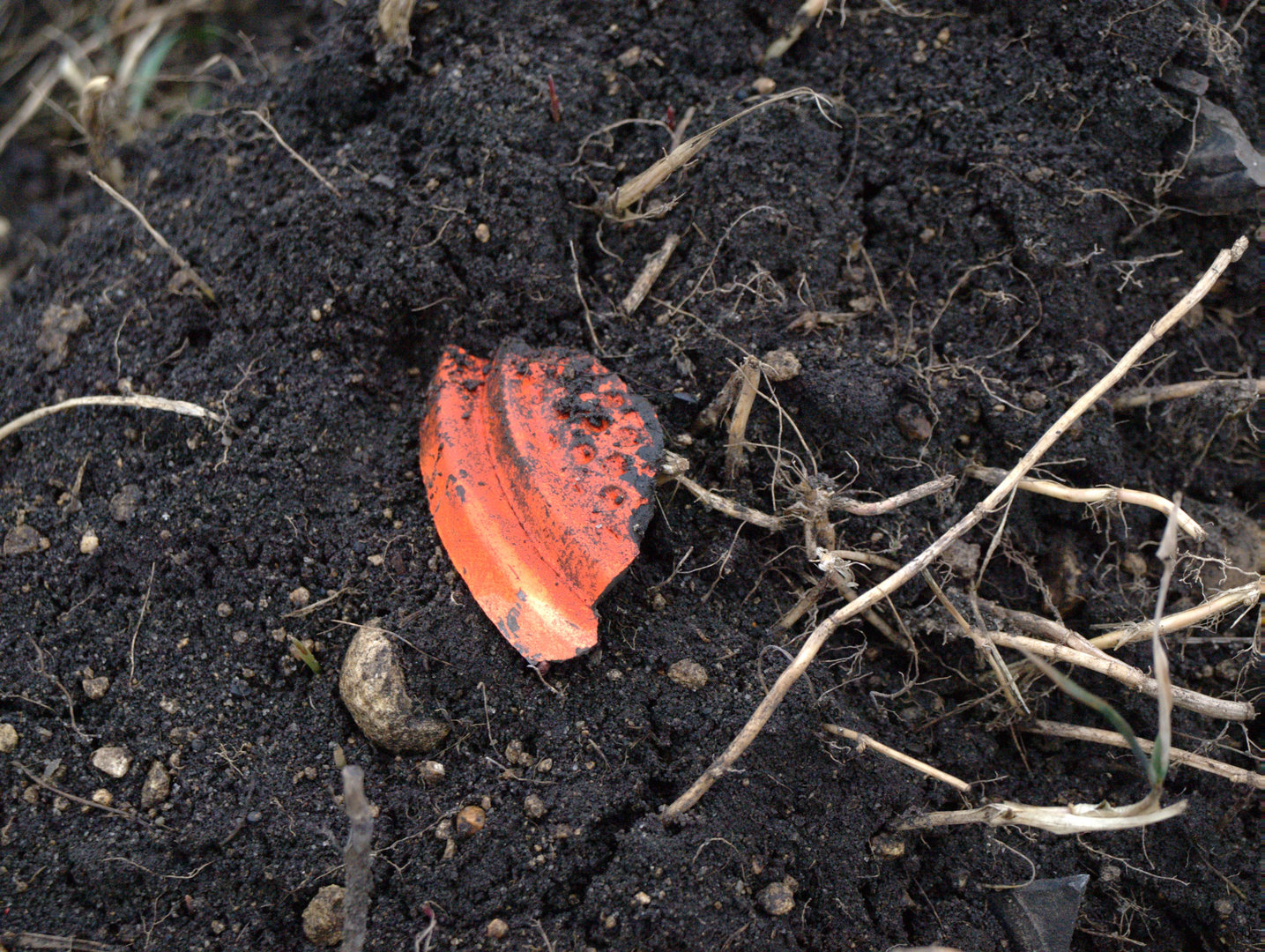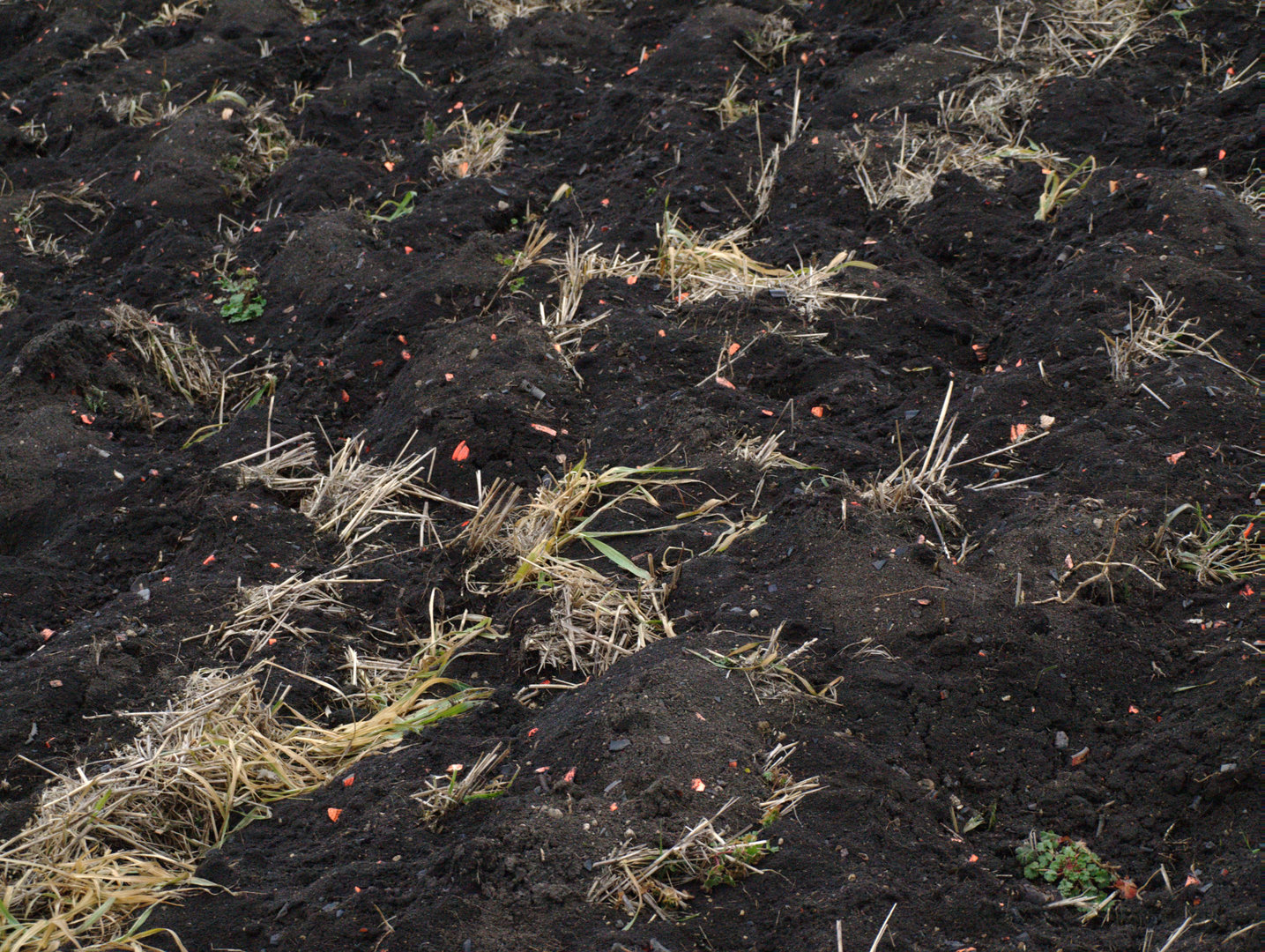 Zorané pole je poseto úlomky asfaltových holubů