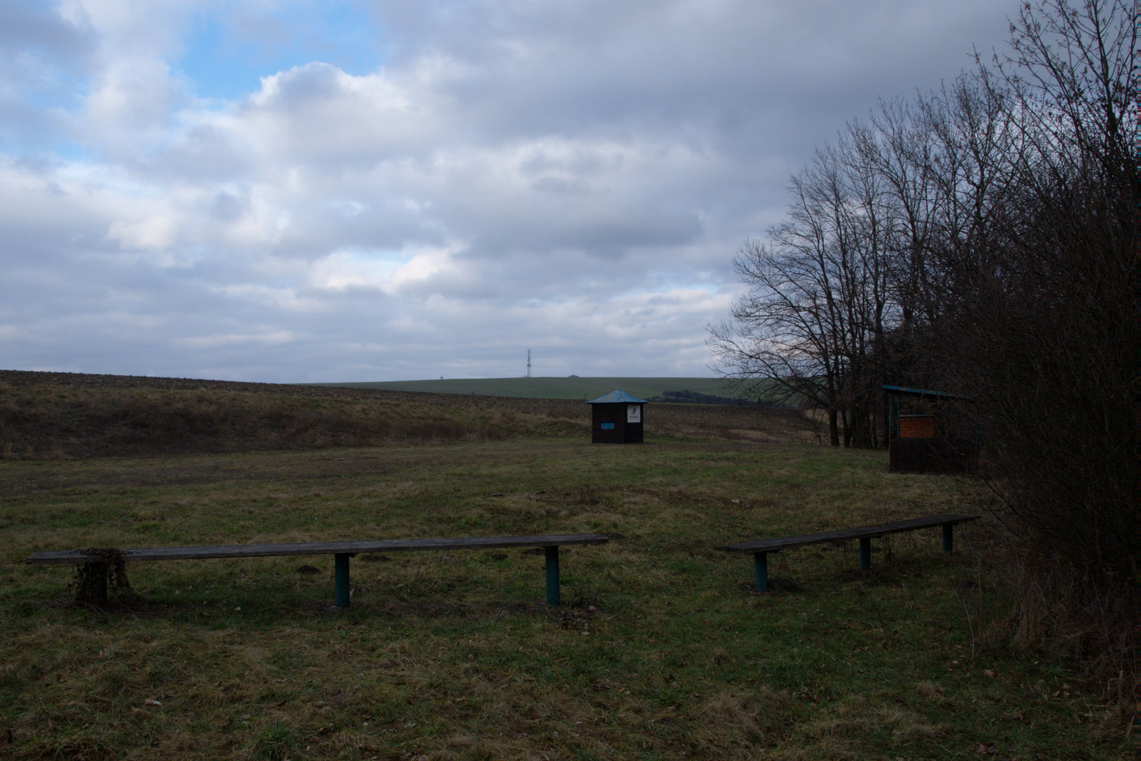 Budka pro rozhodčí na střelišti pro disciplínu skeet