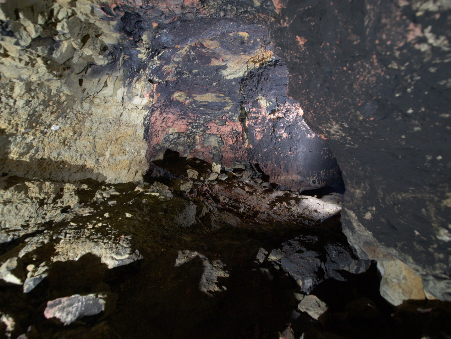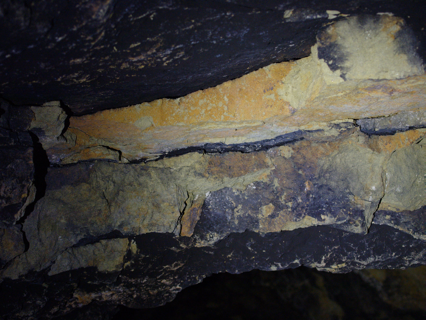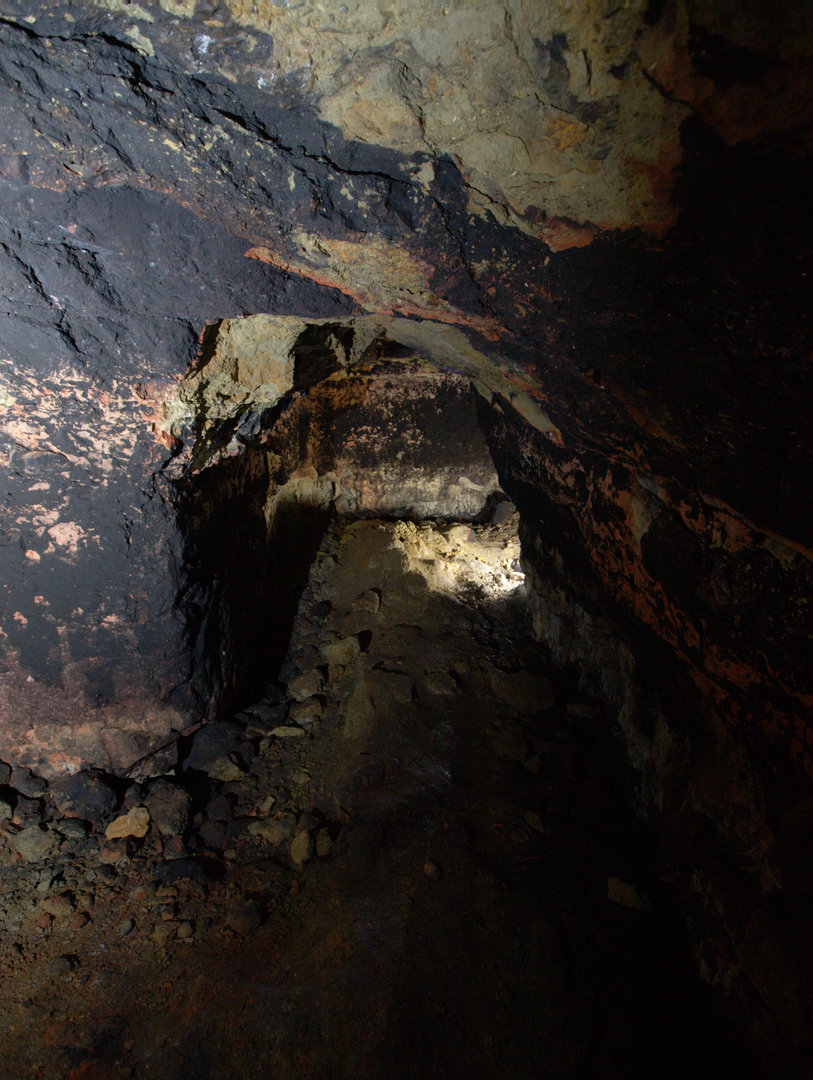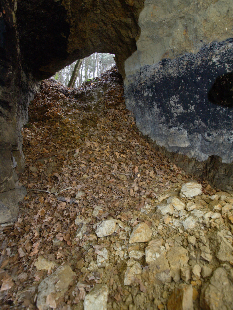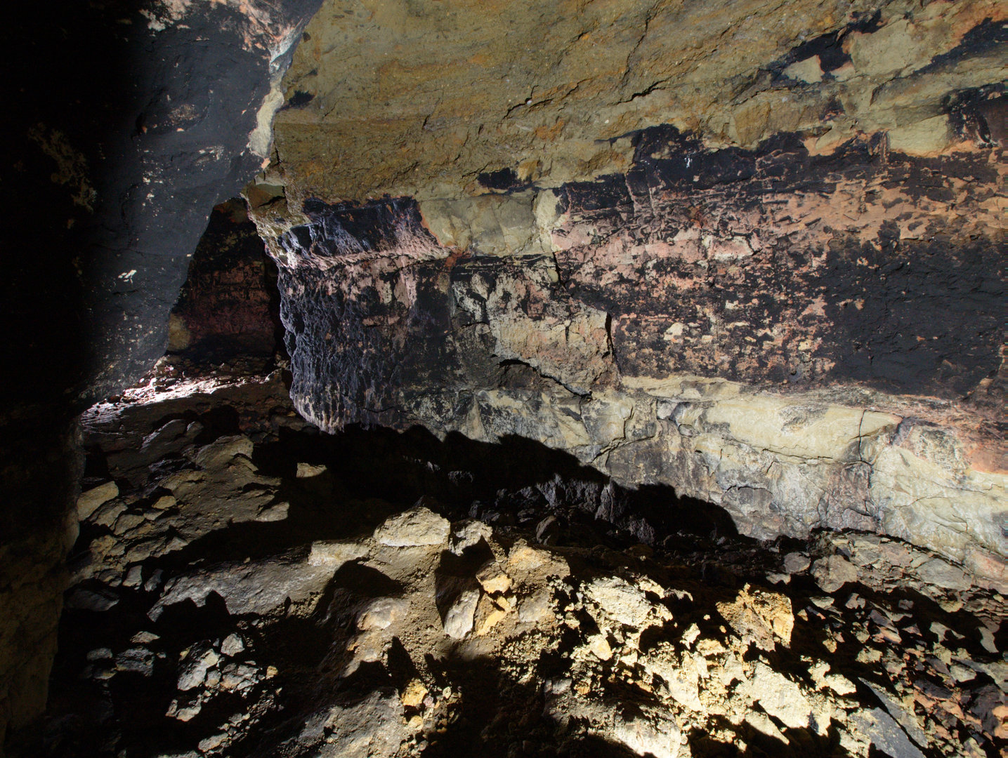 Za vstupem následuje zatáčka, stěny jsou zčernalé sazemi