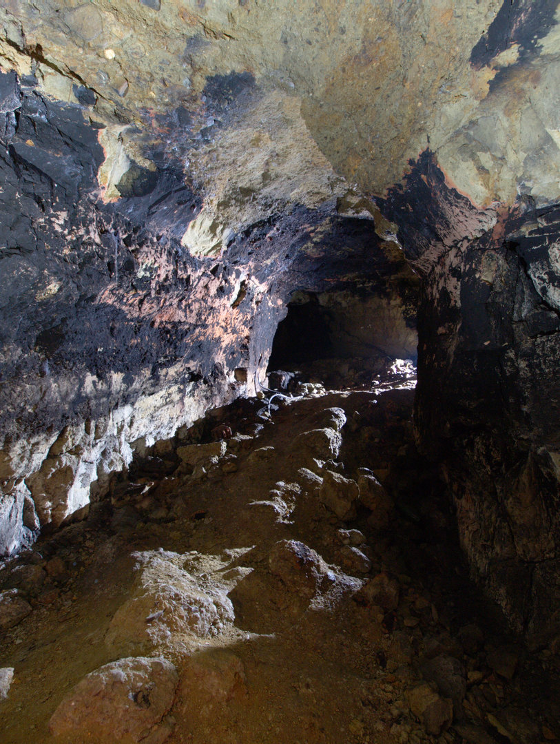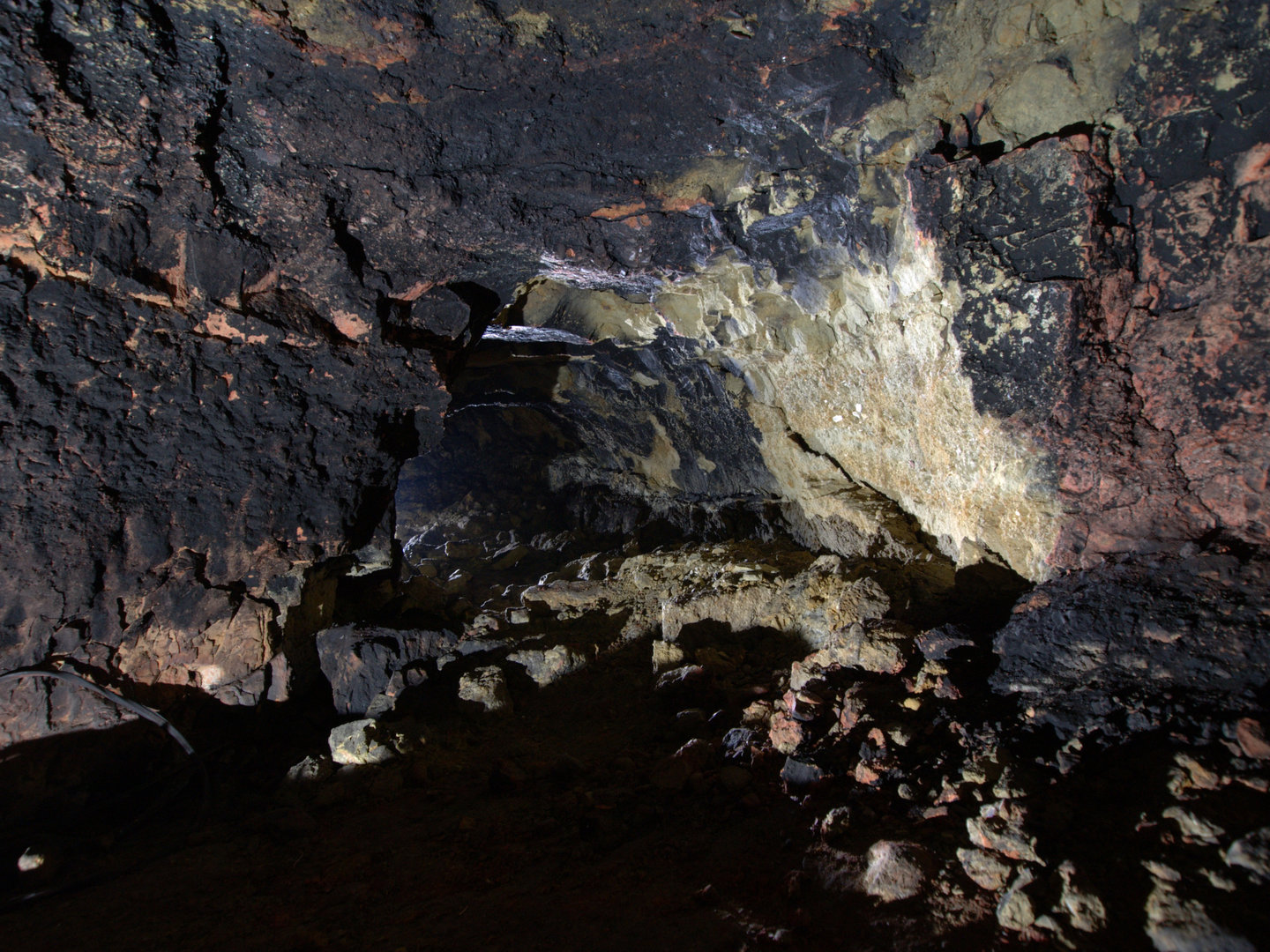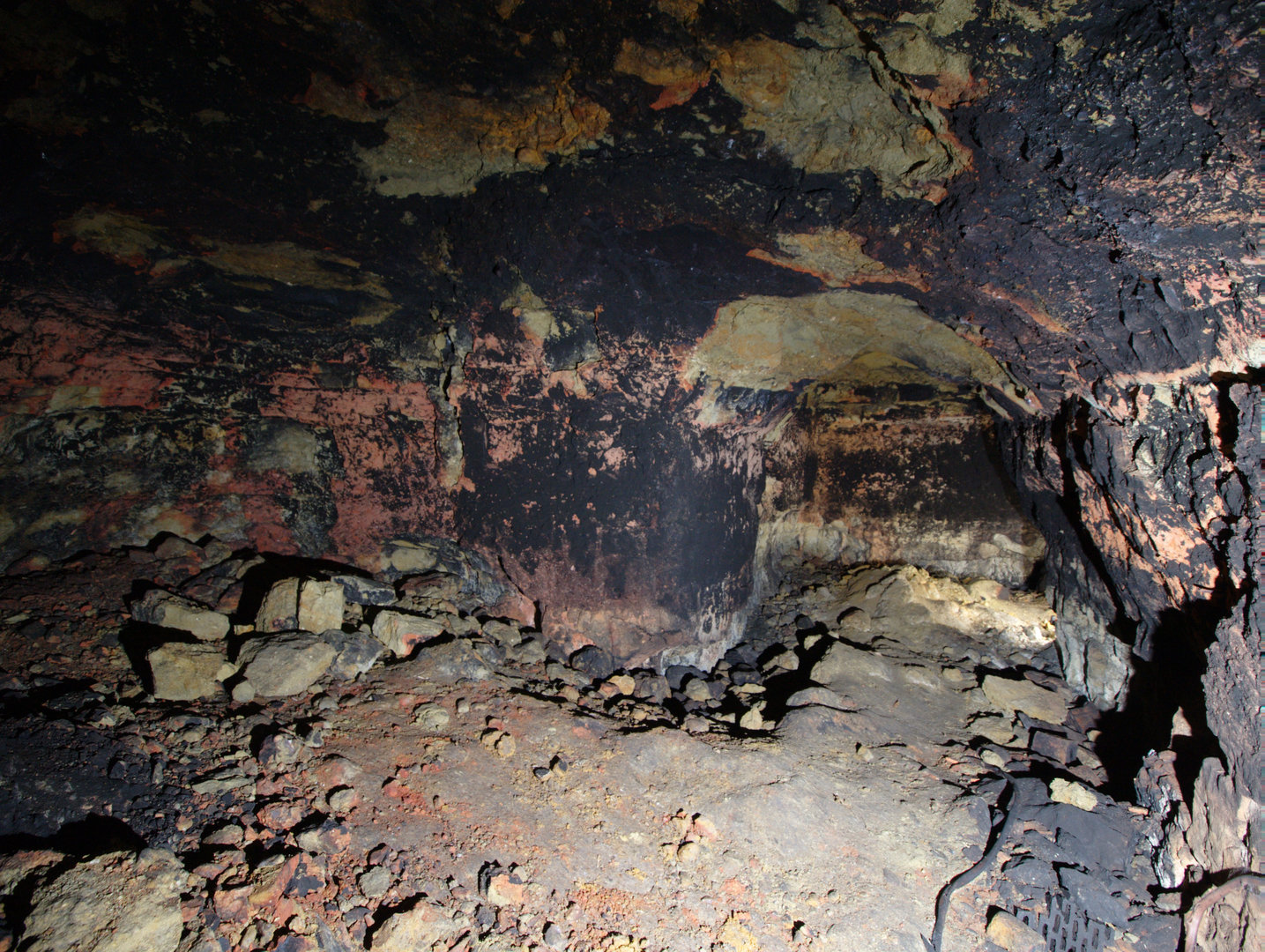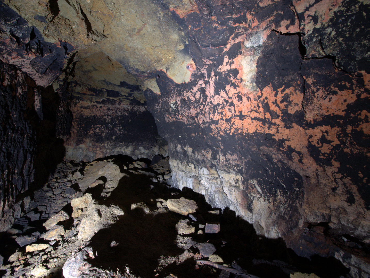 Za vstupem následuje zatáčka, stěny jsou zčernalé sazemi